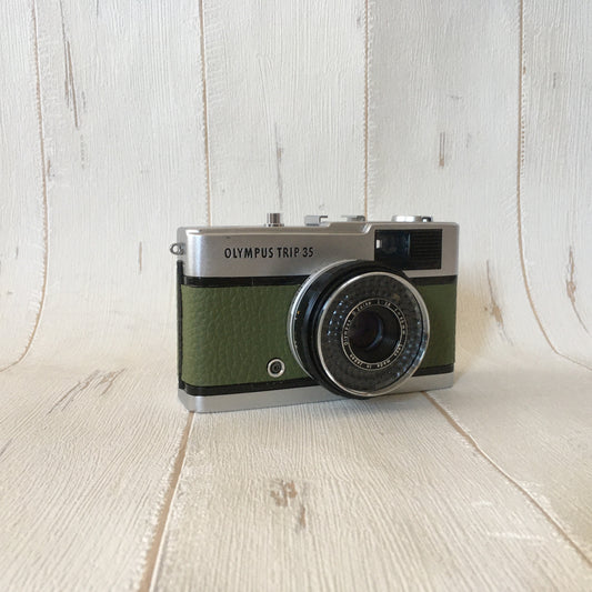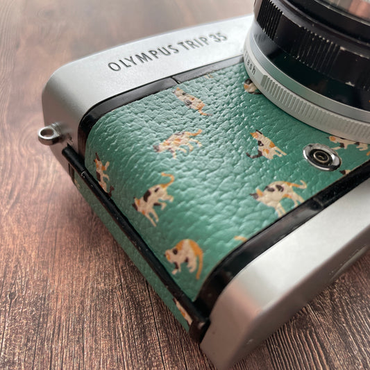 Vintage Film Camera Olympus Trip 35 35mm | Cat-Pattern Green Leather
