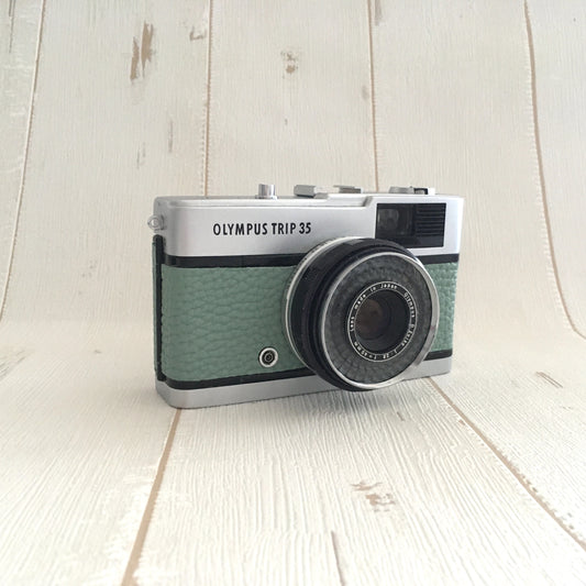 Olympus TRIP35 with crocodile stamped matcha green leather