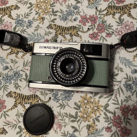Vintage Film Camera Olympus Trip 35 35mm | Cat-Pattern Green Leather