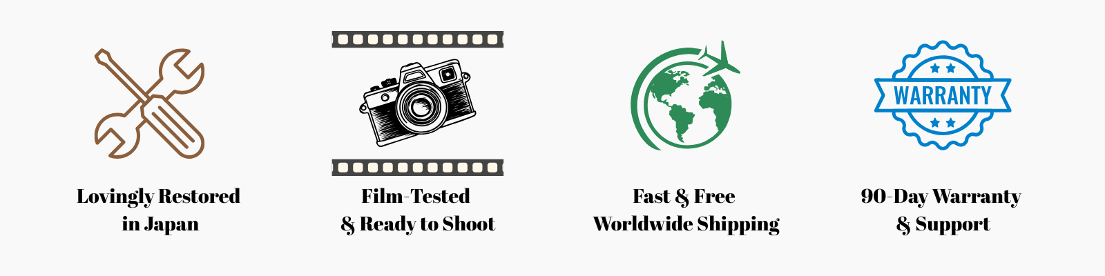 Each camera is completely serviced and tested with real film. We make sure it is in full working order before it leaves our hands.